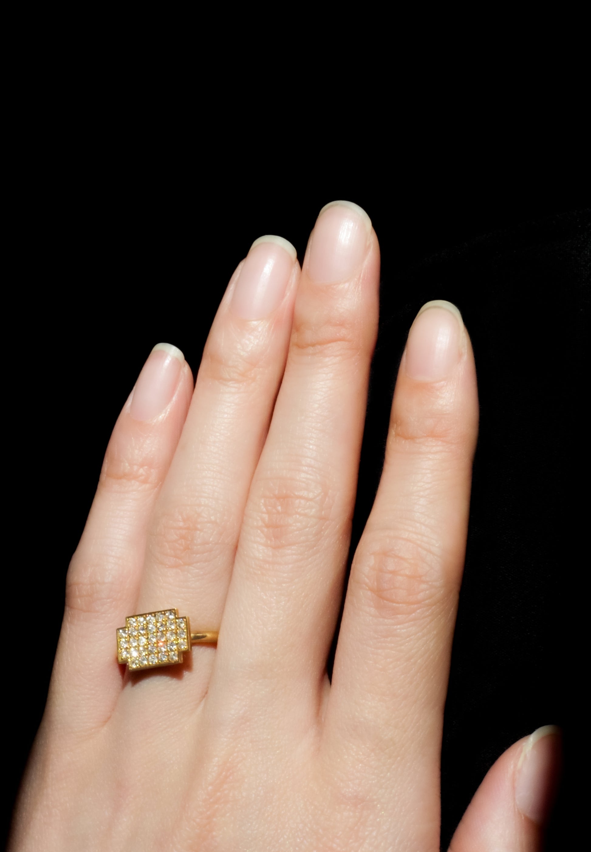 パヴェという石留め技術を使ってダイヤモンドが埋められたリング。”パヴェ”とはフランス語で石畳を意味します。パリのサン=ジェルマン=デ=プレ地区の石畳をイメージしデザインされました。