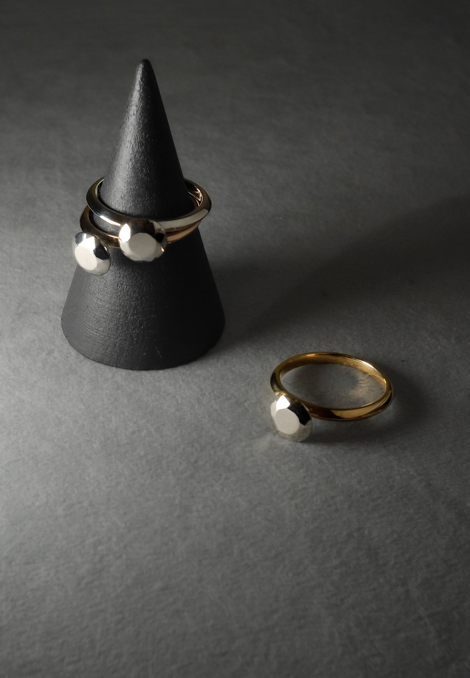 18-Karat yellow gold+Platinum900 facet ring. The design was guided by the words of modernist architect Louis Kahn, ``All matter is what remains after light has burned out.'' The ultimate minimalist modern approach, imitating a diamond ring. Also perfect for engagement rings. *The diameter of the diamond-shaped top is approximately 6.9mm. Equivalent to the size of a diamond of approximately 1.2 carats.