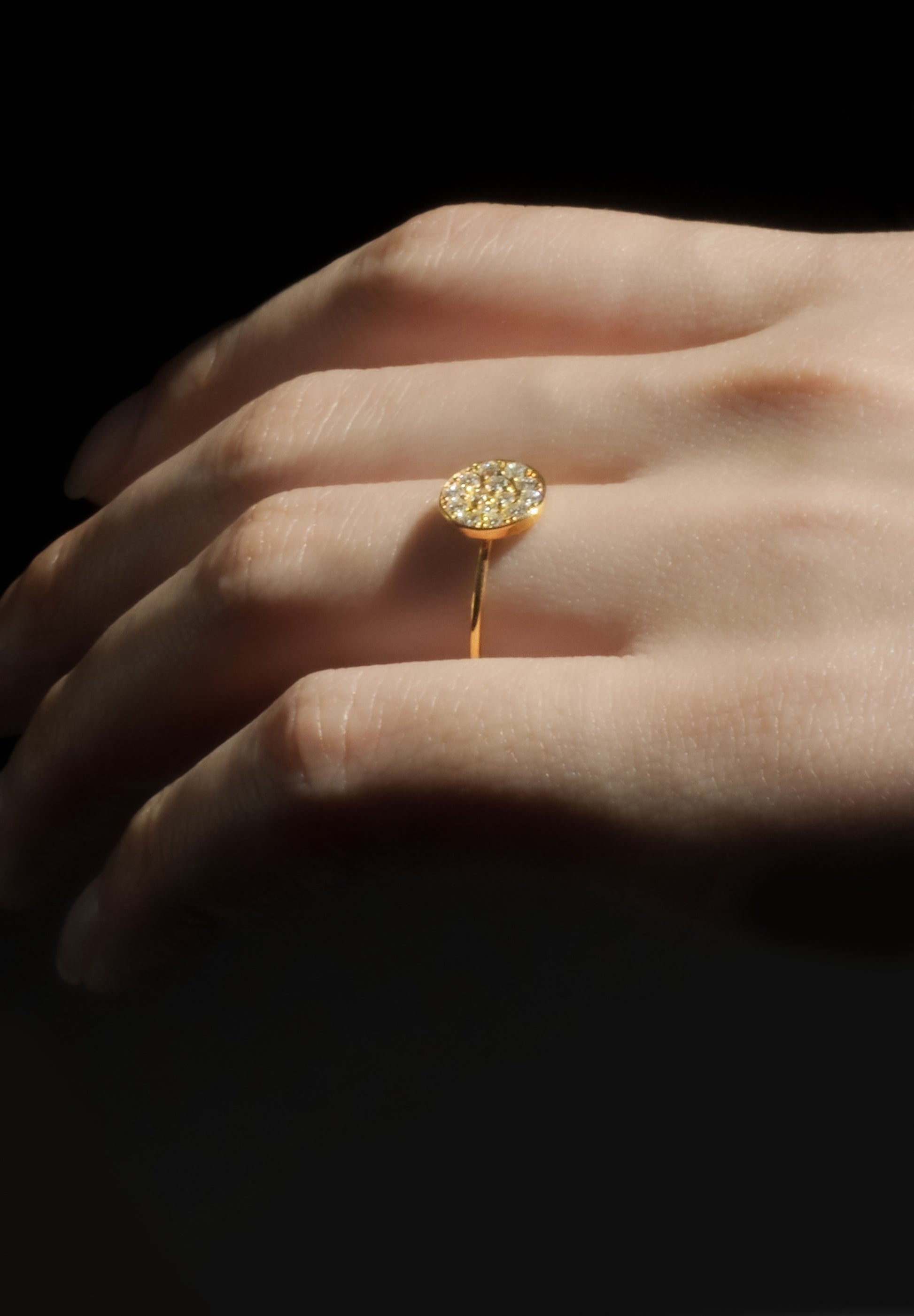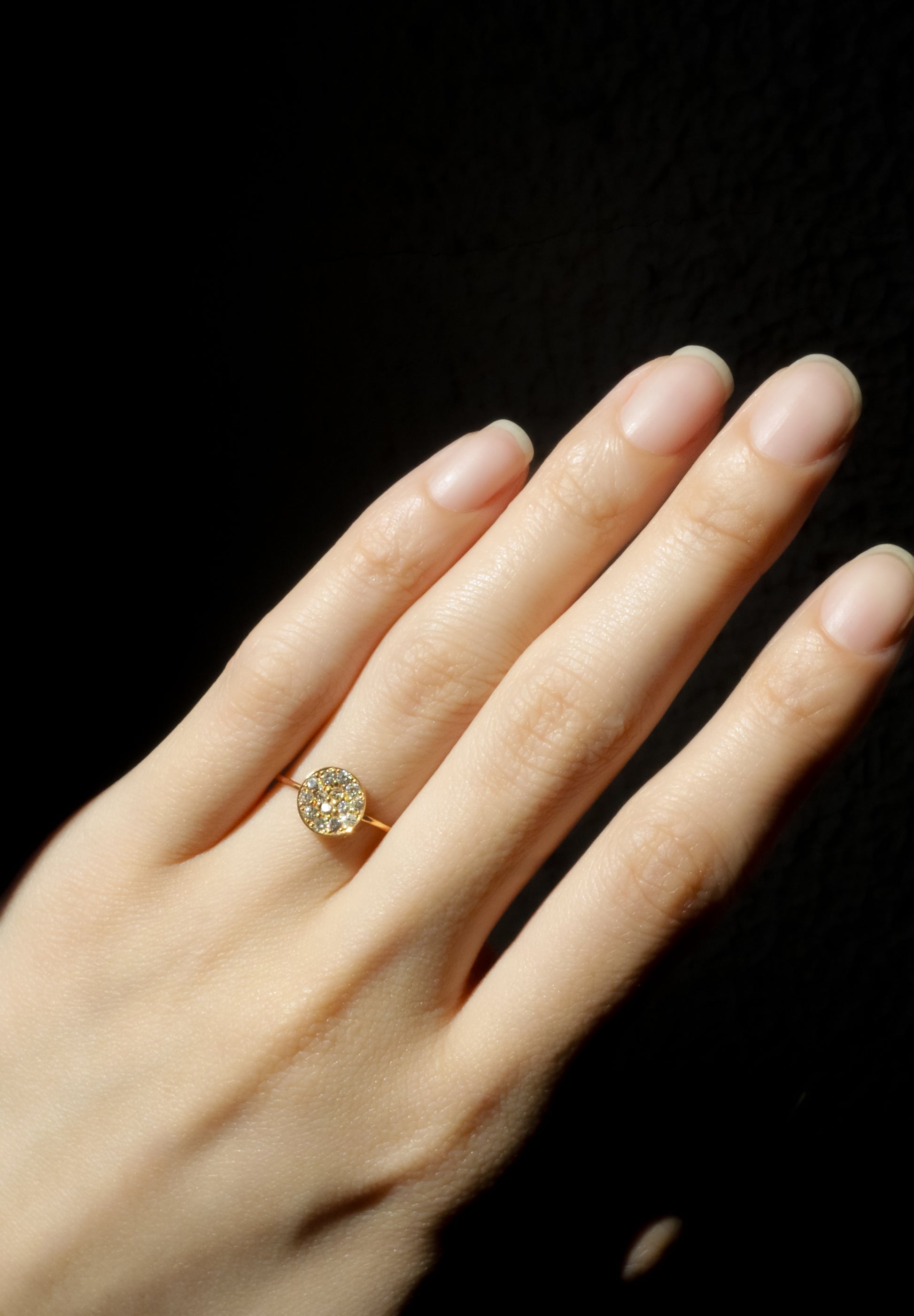A ring filled with diamonds using a pavé technique. "Pave" means cobblestone in French. The design was inspired by the cobblestones of the Saint-Germain-des-Prés district in Paris.
